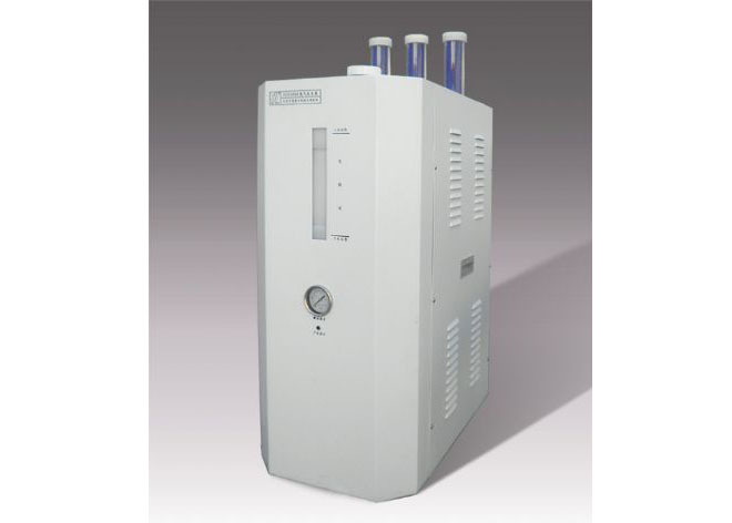 氫氣發生器由電解池、純水箱、氫/水分離器、收集器、干燥器、傳感器、壓力調節閥、開關電源等部件組成。只電解純水即可產氫。通電后,電解池陰極產氫氣,陽極產氧氣,氫氣進入氫/水分離器。氧氣排入大氣。氫/水分離器將氫氣和水分離。氫氣進入干燥器除濕后,經穩壓閥、調節閥調整到額定壓力(0.02~0.45Mpa可調)由出口輸出。電解池的產氫壓力由傳感器控制在0.45Mpa左右,當壓力達到設定值時,電解池電源供應切斷;壓力下降,低于設定值時電源恢復供電。